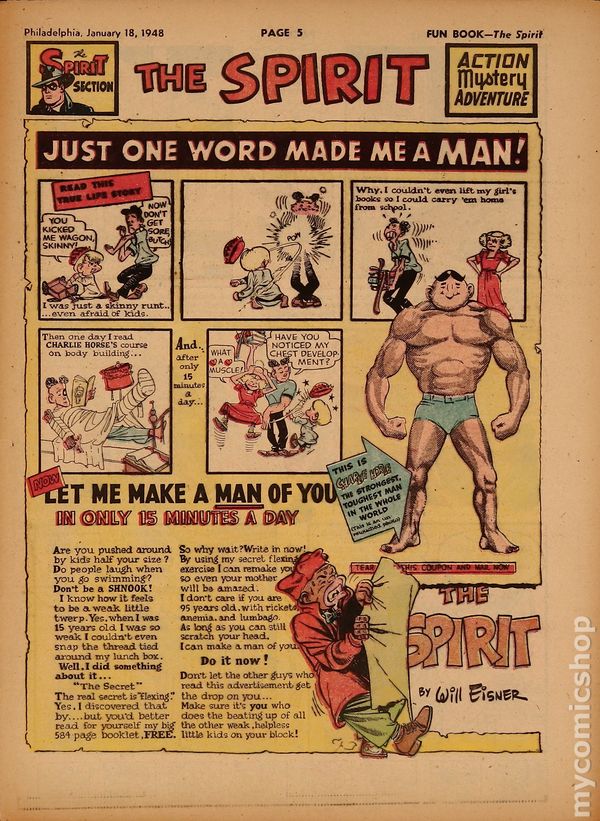 December 15, 1946. Spirit Weekly Newspaper section. Scripts/layouts by Eisner, Eisner/Nordling, Eisner/Mercer, or Spranger/Eisner; inks by Eisner or Eisner/Spranger. Tabloid Sized Newsprint, 10-3/4" x 15", 8 pages, full color.