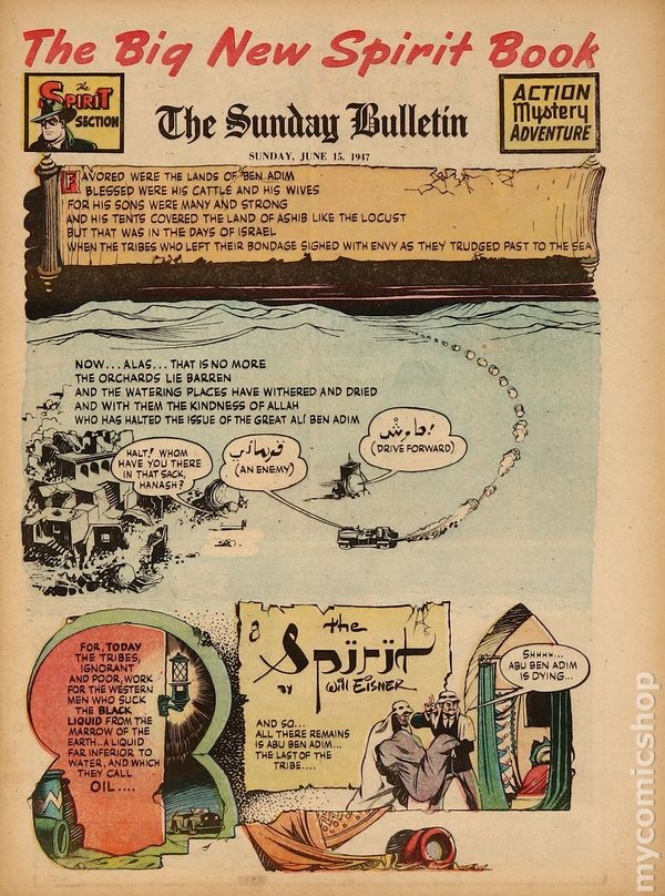 June 15, 1947. Spirit Weekly Newspaper section. Scripts, pencils/inks by Eisner except where noted. Tabloid Sized Newsprint, 10-3/4" x 15", 8 pages, full color.