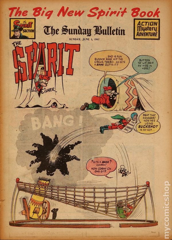June 1, 1947. Spirit Weekly Newspaper section. Scripts, pencils/inks by Eisner except where noted. Tabloid Sized Newsprint, 10-3/4" x 15", 8 pages, full color.