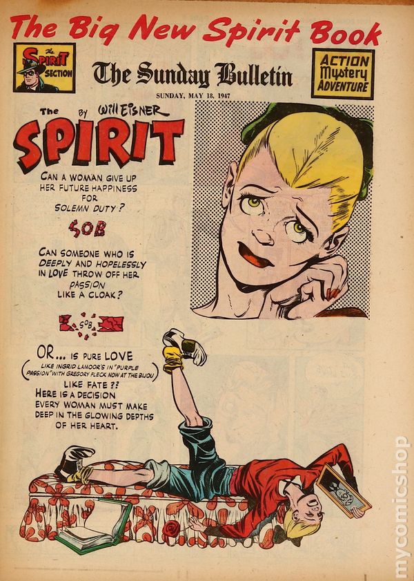 May 18, 1947. Spirit Weekly Newspaper section. Scripts, pencils/inks by Eisner except where noted. Tabloid Sized Newsprint, 10-3/4" x 15", 8 pages, full color.