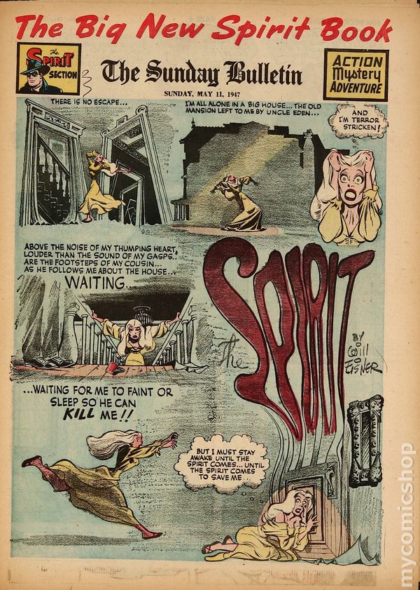 May 11, 1947. Spirit Weekly Newspaper section. Scripts, pencils/inks by Eisner except where noted. Tabloid Sized Newsprint, 10-3/4" x 15", 8 pages, full color.