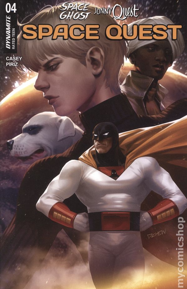 Limited 1 for 15 Retailer Incentive Variant Cover. Written by Joe Casey. Art by Sebastian Piriz. Cover by Derrick Chew. After evading an entire battalion of security at Area 51, Dr. Quest, Race Bannon, Jan, and Jace finally figure out how to get a signal through to Space Ghost. The good news is that the Guardian of the Spaceways is able to use it to open a portal that takes the Phantom Cruiser back to Earth. The bad news is that the portal also brings one of Dr. Nightmare's mechanical beasts with it! Grown-up adventurers JOE CASEY and SEBASTIÁN PÍRIZ pull out all the stops for the thrilling finale of their cosmos-spanning crossover in Space Ghost/Jonny Quest: Space Quest #4 commemorated by carefully curated covers from MARK SPEARS, JOSHUA MIDDLETON, DERRICK CHEW, BEN OLIVER, and CHAD HARDIN! 32 pages, full color. Rated T Cover price $4.99.