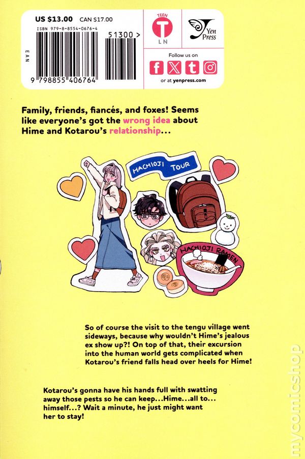 Volume 2 - 1st Printing. Story, art, and cover by Tomo Nanao. Translated by Nicole Wilder. Family, friends, fiancés, and foxes! Seems like everyones got the wrong idea about Hime and Kotarous relationship… So of course the visit to the tengu village went sideways, because why wouldnt Himes jealous ex show up?! On top of that, their excursion into the human world gets complicated when Kotarous friend falls head over heels for Hime! Kotarous gonna have his hands full with swatting away those pests so he can keep…Hime…all to… himself…? Wait a minute, he just might want her to stay!! Softcover, 5-in. x 7 1/2-in., 244 pages, B&W. Teen Cover price $13.00.