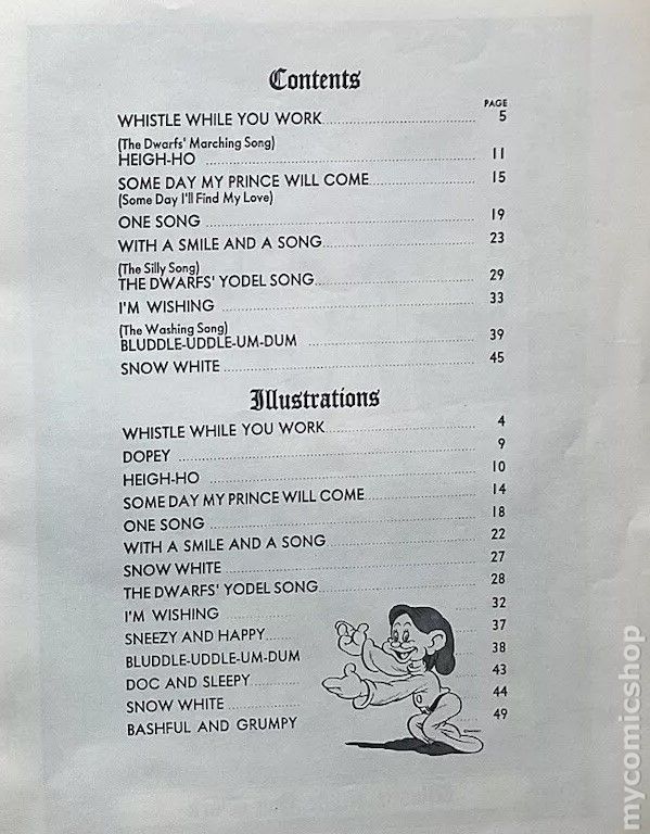 Snow White and the Seven Dwarfs Souvenir Music Album (1938 Bourne Inc.) comic books