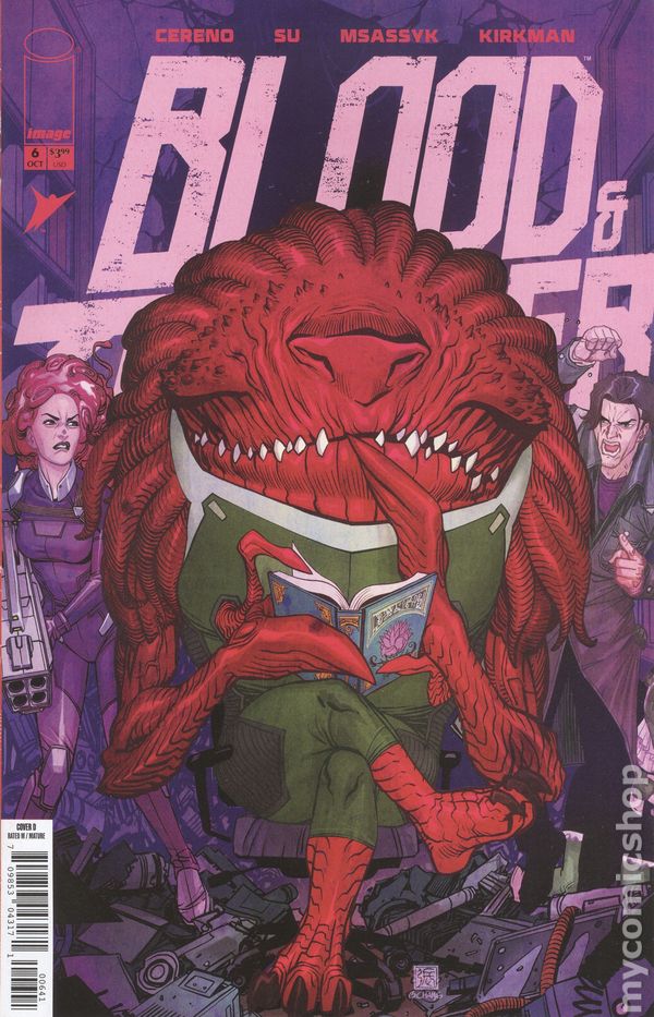 2nd Printing. Cover B. Written by Benito Cereno. Art and Cover by E.J. Su, Msassyk. SERIES PREMIERE Bounty hunter Akeldama Blood Bledsoe and her cantankerous talking gun Thunder are the best out there at bringing in the bad guys. However, when the galaxys most dangerous criminal breaks out of prison, Bloods hunt delivers her down a path that will unlock secrets about her past, present, and future...and thats when things get REALLY BAD. The team of BENITO CERENO, E.J. SU (TECH JACKET), and MICHELE MSASSYK ASSARASAKORN, in partnership with visionary creator** ROBERT KIRKMAN** (INVINCIBLE, THE WALKING DEAD), present an all-new action epic set in the near future where Earth has integrated alien species into a new society—meaning theres a whole new set of rules...and a whole load of new crimes to solve. 28 pages, full color. Rated M Cover price $3.99.