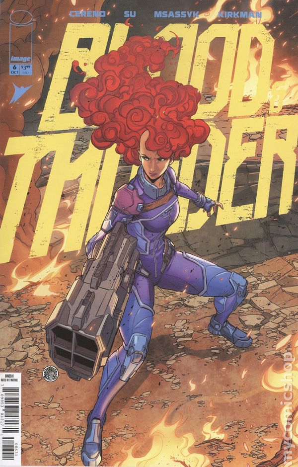 Written by Benito Cereno. Art by E.J. Su, Msassyk. Cover by E.J. Su, Msassyk. SERIES PREMIERE Bounty hunter Akeldama Blood Bledsoe and her cantankerous talking gun Thunder are the best out there at bringing in the bad guys. However, when the galaxys most dangerous criminal breaks out of prison, Bloods hunt delivers her down a path that will unlock secrets about her past, present, and future...and thats when things get REALLY BAD. The team of BENITO CERENO, E.J. SU (TECH JACKET), and MICHELE MSASSYK ASSARASAKORN, in partnership with visionary creator** ROBERT KIRKMAN** (INVINCIBLE, THE WALKING DEAD), present an all-new action epic set in the near future where Earth has integrated alien species into a new society—meaning theres a whole new set of rules...and a whole load of new crimes to solve. 28 pages, full color. Rated M Cover price $3.99.