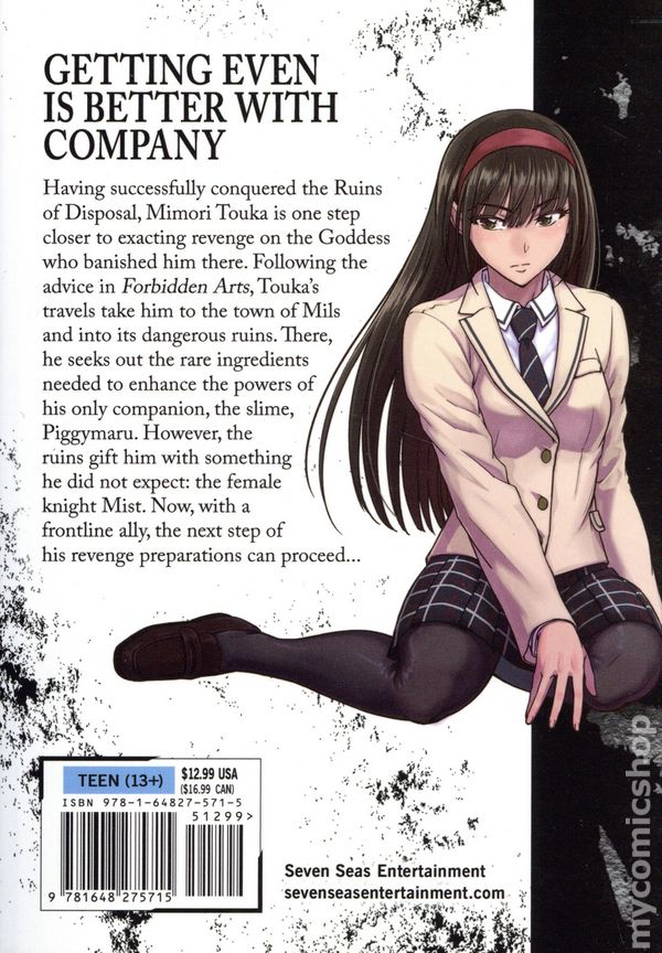 Volume 3 - 1st Printing. Written by Kaoru Shinozaki and Keyako Uchiuchi. Art by Sho Uyoshi and KWKM. Having successfully conquered the Ruins of Disposal, Mimori Touka is one step closer to exacting revenge on the Goddess who banished him there. Following the advice in The Forbidden Arts, Toukas travels take him to the town of Mils and into its dangerous ruins. There, he seeks out the rare ingredients needed to enhance the powers of his only companion, the slime, Piggy-maru. However, the ruins gift him with something he did not expect: the female knight Mist. Now with a frontline ally, the next step of his revenge preparations can proceed! Softcover, 5-in. x 7 1/2-in., 180 pages, B&W. Cover price $12.99.