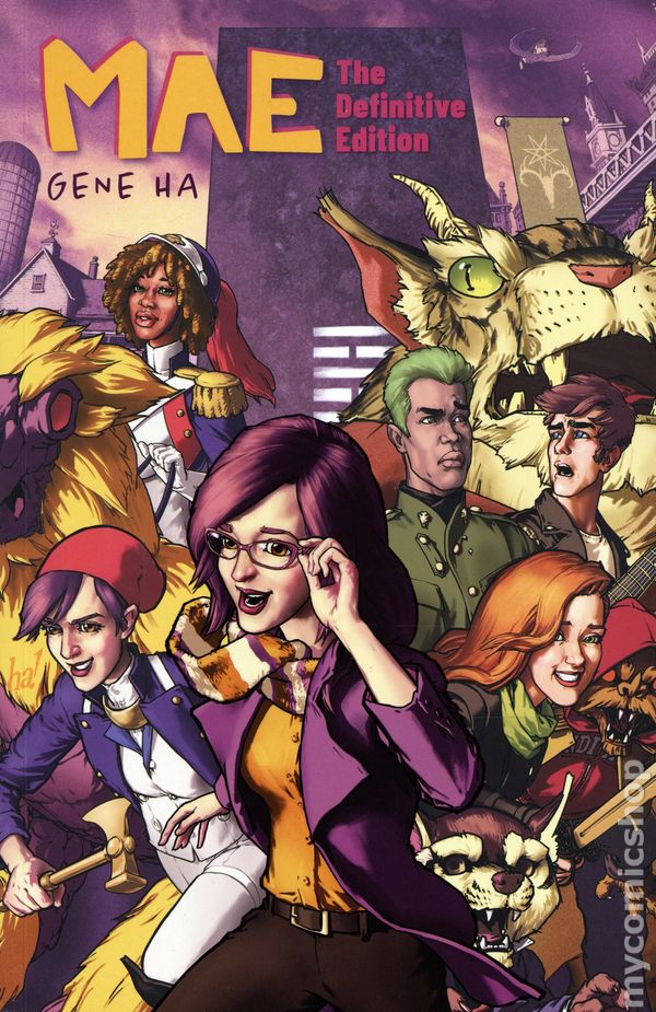 1st printing. Story and art by Gene Ha. Introduction by Mike Maihack. Mae: The Definitive Edition includes all 12 issues of Gene Has masterpiece comic series—remastered and fully realized to the creators ultimate vision, with never-before-seen story pages and a cavalcade of behind-the-scenes extras, all collected in this stunning volume. Maes older sister, Abbie, has been missing for years. Mae has her theories about where Abbie might be, but never in her wildest dreams did those theories encompass a fantasy world full of terrifying monsters, power-hungry nobles, and nefarious scientists . . . until Abbie suddenly returns. She convinces Mae join her in the fantastical realm of Cimrterén and join her quest to find their missing father. Along their journey, theyll come across old friends and dangerous new foes. Together they unlock secrets and piece together a much darker family history than they ever could have imagined. Softcover, 400 pages, full color. Cover price $29.99.