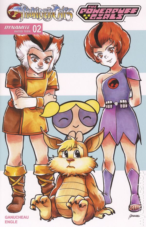 Written by Paulina Ganucheau. Art by Coleman Engle. Cover by Paulina Ganucheau. In the greatest crossover since peanut butter met jelly, The Powerpuff Girls travel from Townsville to Third Earth and discover the world of the ThunderCats! After being trapped in a runaway rocket by Mojo Jojo, the titanic trio find themselves on a strange planet where their super-powers don't work. Luckily, someone named Snarf is there to provide a situation report and wouldn't you know it, there's evil that needs defeating! But without their Chemical X-enhanced abilities, what can Bubbles, Blossom, and Buttercup do against a foe like Mumm-Ra? Find out as writer PAULINA GANUCHEAU and artist COLEMAN ENGLE open up the Treasures of Thundera in the first issue of ThunderCats/The Powerpuff Girls featuring instantly iconic covers from GANUCHEAU and ENGLE as well as CORAN KIZER STONE, SAOWEE, and NICOLETTA BALDARI! 32 pages, full color. Rated T Cover price $4.99.