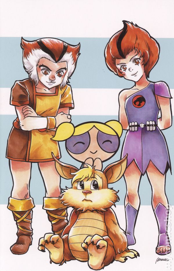 Limited 1 for 20 Retailer Incentive Variant Cover. Written by Paulina Ganucheau. Art by Coleman Engle. Cover by Paulina Ganucheau. In the greatest crossover since peanut butter met jelly, The Powerpuff Girls travel from Townsville to Third Earth and discover the world of the ThunderCats! After being trapped in a runaway rocket by Mojo Jojo, the titanic trio find themselves on a strange planet where their super-powers don't work. Luckily, someone named Snarf is there to provide a situation report and wouldn't you know it, there's evil that needs defeating! But without their Chemical X-enhanced abilities, what can Bubbles, Blossom, and Buttercup do against a foe like Mumm-Ra? Find out as writer PAULINA GANUCHEAU and artist COLEMAN ENGLE open up the Treasures of Thundera in the first issue of ThunderCats/The Powerpuff Girls featuring instantly iconic covers from GANUCHEAU and ENGLE as well as CORAN KIZER STONE, SAOWEE, and NICOLETTA BALDARI! 32 pages, full color. Rated T Cover price $4.99.