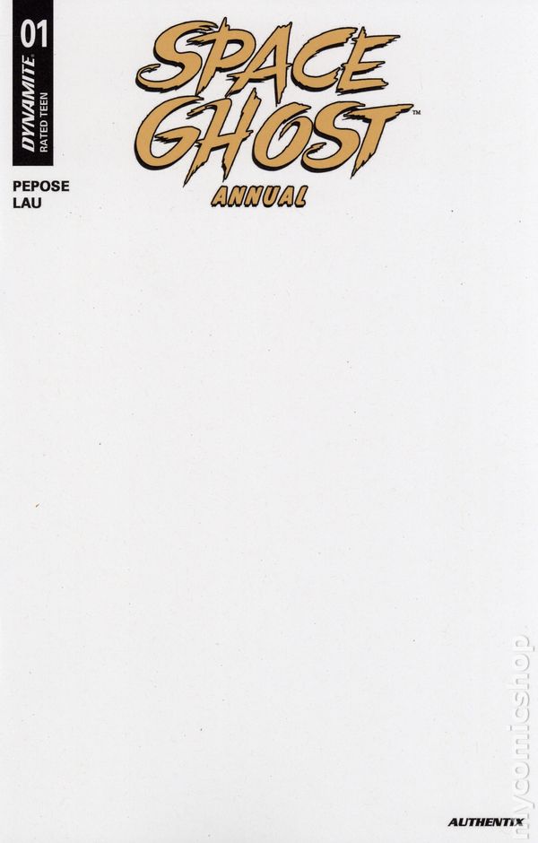 $6 Space Ghost Annual #1 Blank Authentix Variant Cover E $11 SPACE GHOST ANNUAL #1 (ONE SHOT) CVR E BLANK AUTHENTIX VAR DYNAMITE Comic Book Clicking on the links to the eBay listings shown above and then making a purchase may result in MyComicShop earning a commission from the eBay Partner Network.