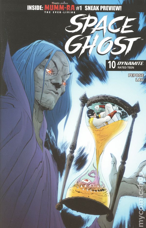 (W) David Pepose (A) Jonathan Lau (CA) Michael Cho Tempus the Time-Master, Part Two! Enter... the Time Tyrants! With Space Ghost trapped alone in the prehistoric jungle, he finds himself hunted by Tempus the Time-Master's enforcers: Toymaker, Tarko the Terrible, Barbos the Time-Pirate, and the Sorceress! Meanwhile, Jan and Jace must survive a dystopian future ruled by the Rock Robots! In order to survive this doomed timeline, they'll have to team up with a future from the past... as Space Spectre makes his triumphant return! Written by David (Punisher) Pepose and drawn by Dynamite superstar Jonathan Lau. Cover price $4.99.