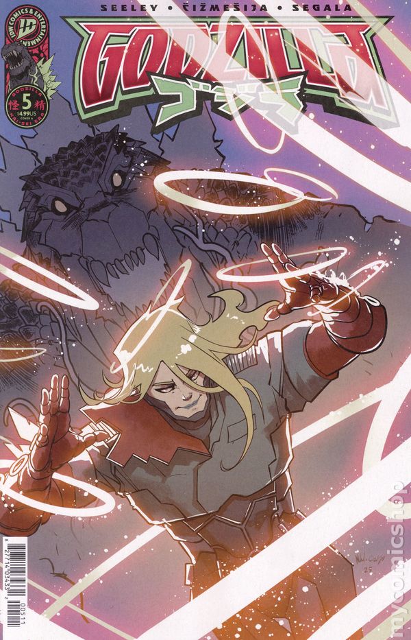 (W) Tim Seeley (A) Nikola Cizmesija (CA) Isaac Sánchez González Godzilla. Jacen Braid. Yacumama. Lament.The biggest fight of the year is happening in the pages of Godzilla #5. As Jacen Braid finally starts to understand Rumi's kaiju pressure point technique, the rest of G-Force shows up with two new kaiju—and one of them can talk!Will the combined might of Jacen, Lament, the leech kaiju Yacumama, and G-Force be enough to kill Godzilla? And…what happens if Godzilla dies?Find out in Godzilla #5! 32 pages, full color, not rated. Cover price $4.99.