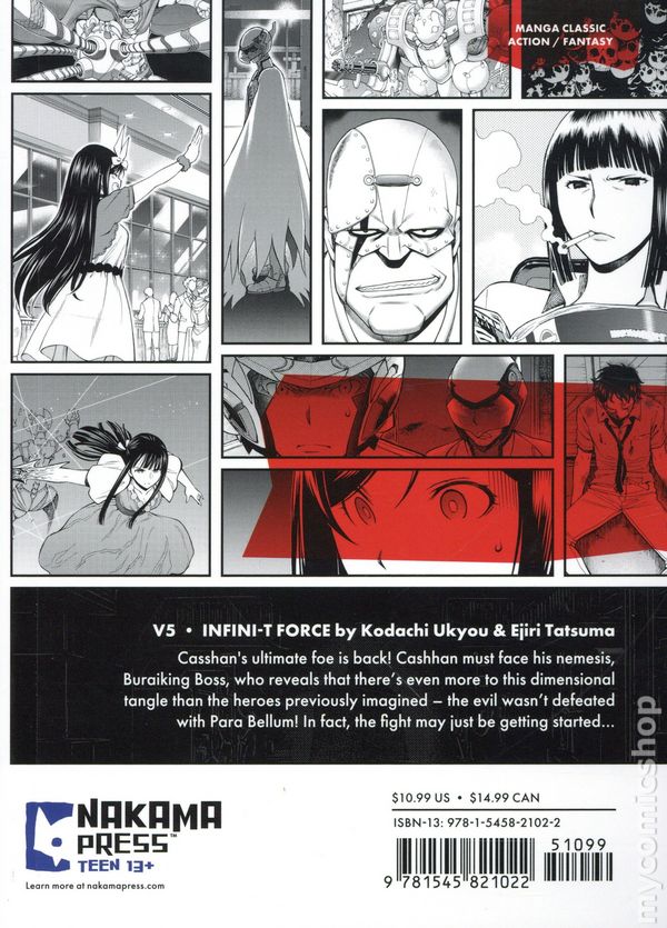 Volume 5 - 1st printing. Written by Ukyo Kodachi. Art and cover by Tatsuma Ejiri. Translated by Caleb D. Cook. Casshan's ultimate foe is back! Casshan must face his nemesis, Buraiking Boss, who reveals that there's even more to this dimensional tangle than the heroes previously imagined--the evil wasn't defeated with Para Bellum! In fact, the fight may be just getting started... Softcover, 5 1/2-in. x 8-in., 194 pages, B&W. Cover price $10.99.