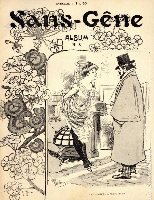 The term "sans-gêne" is an appellation used in France to denote unabashed behavior and a disregard for societal constraints. Sans-Gêne in this context is a charming, humorous, and risqué French magazine, published and edited by Samuel-Sigismond Schwarz, that lives up to the name. Features biting wit and humor with numerous mildly bawdy illustrations and cartoons by some of the top French illustrators of the time. This album collects issues 71 - 80, dated July 5 through Sept. 6, 1902. 8.5" x 11", 160 pages, B&W. NOTE: All text in French.