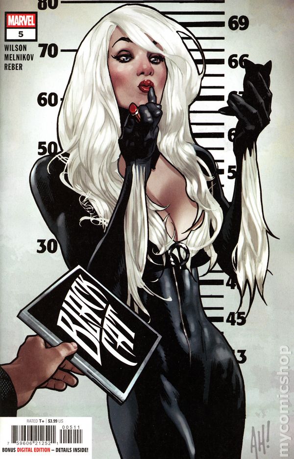 (W) G. Willow Wilson (A) Gleb Melnikov (CA) Adam Hughes BLACK CAT…JAIL-BOUND?! Trapped and out of options, BLACK CAT has one last, desperate play to make! Friends, enemies, public opinion - they've ALL turned on her…except for one ride or die who may just be the key to righting this sinking super-hero ship! GUEST-STARRING EVERYBODY'S FAVORITE REDHEAD! Cover price $3.99.