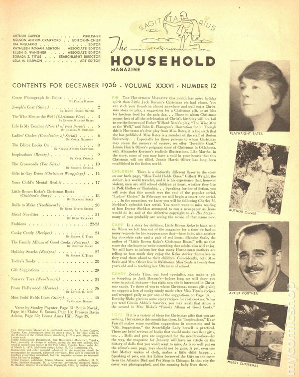 Household Magazine (c.1920 Arthur Capper) Vol. 36 #12Published Dec 1936 by Arthur Capper.