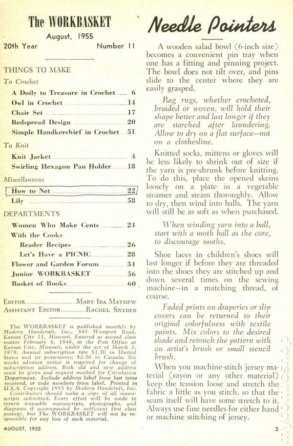 Workbasket (1935 - 1996 Modern Handcraft) Vol. 20 #11Published Aug 1955 by Modern Handcraft.