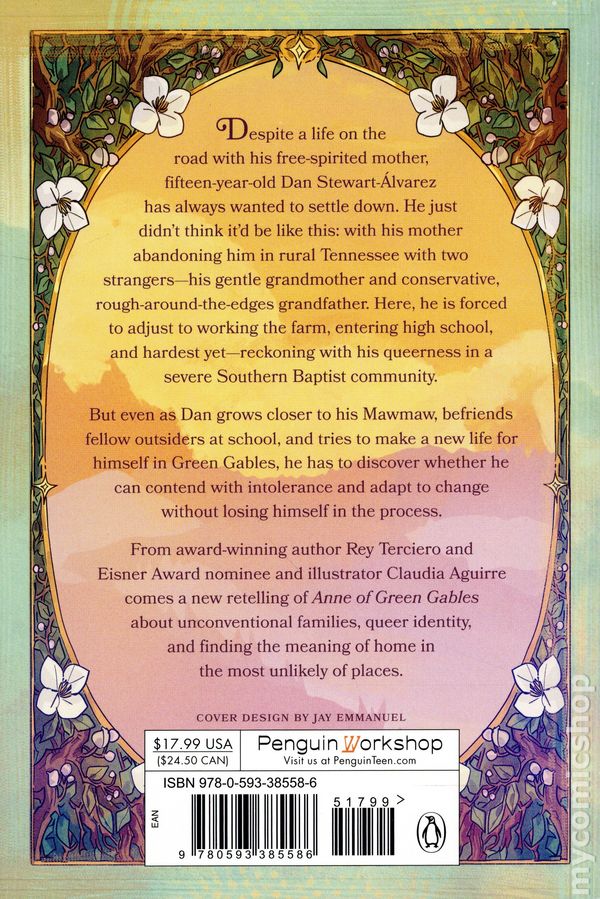 1st printing. Inspired by the Story by L. M. Montgomery. Written by Rey Terciero. Art and cover by Claudia Aguirre. Despite a life on the road with his free-spirited mother, fifteen-year-old Dan Stewart-Álvarez has always wanted to settle down. He just didn't think it'd be like this: with his mother abandoning him in rural Tennessee with two strangers-his gentle grandmother and conservative, rough-around-the-edges grandfather. Here, he is forced to adjust to working the farm, entering high school, and hardest yet-reckoning with his queerness in a severe Southern Baptist community. But even as Dan grows closer to his mawmaw, befriends fellow outsiders at school, and tries to make a new life for himself in Green Gables, he has to discover whether he can contend with intolerance and adapt to change without losing himself in the process. From award-winning author Rey Terciero and Eisner Award nominee and illustrator Claudia Aguirre comes a new retelling of Anne of Green Gables about unconventional families, queer identity, and finding the meaning of home in the most unlikely of places. Softcover, 5 1/2-in. x 7-in., 256 pages, full color. Cover price $17.99.