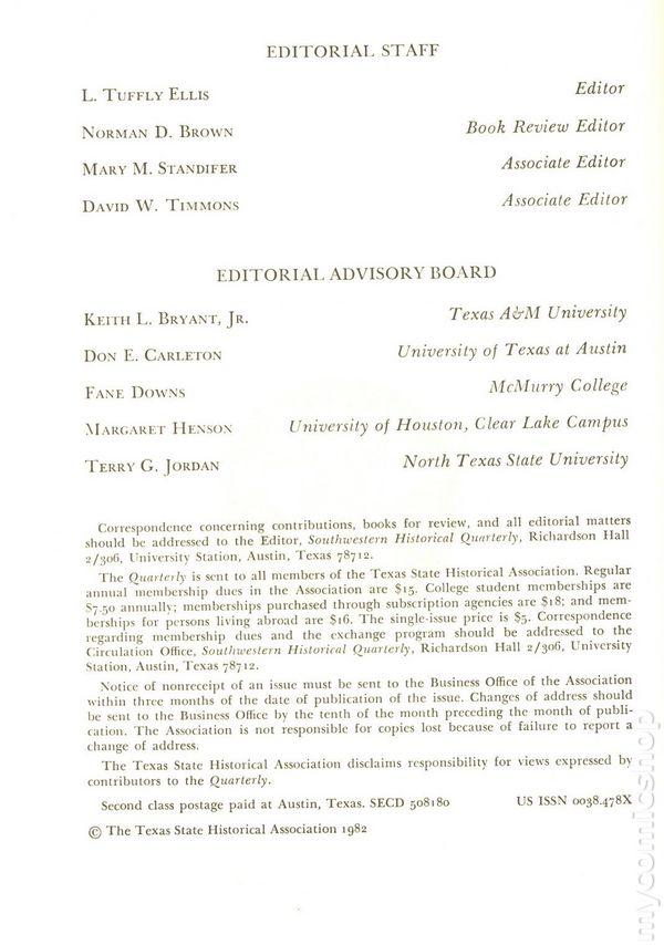 Southwestern Historical Quarterly (1897 - Present Texas State Historical Association) comic books