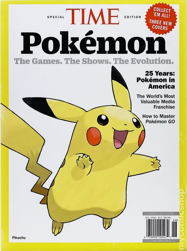 "Pikachu" Edition Variant Cover. A Time Special Edition following Pokemon's 25 successful years in the U.S., covering the video games, TV show, and evolution of the brand. Includes articles over "The World's Most Valuable Media Franchise" and "How to Master Pokemon GO". 8" X 10 3/4". Cover price $14.99.