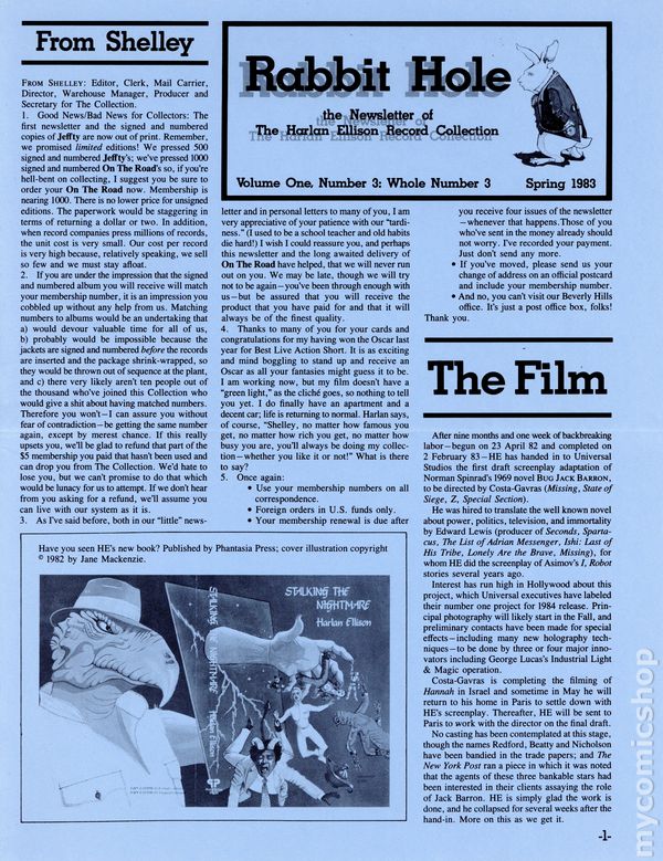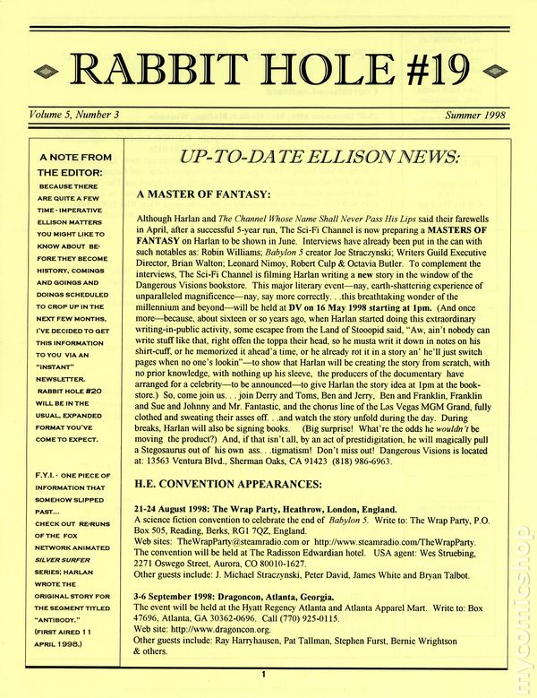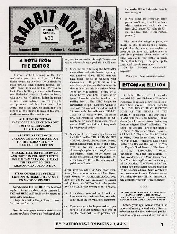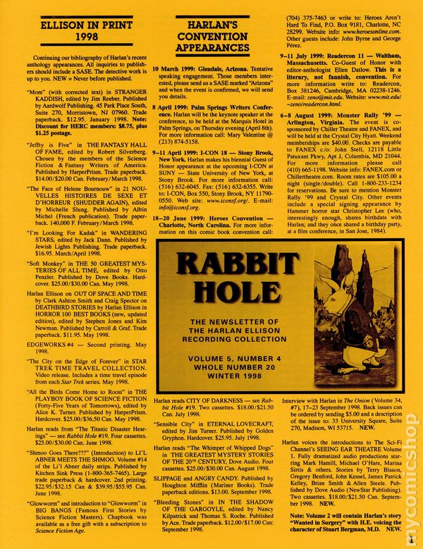 Rabbit Hole (1981-2018 Kilimanjaro Corporation / Harlan Ellison Newsletter) Fanzine comic books