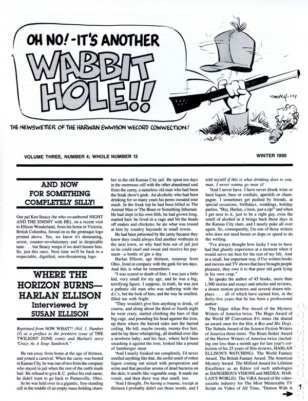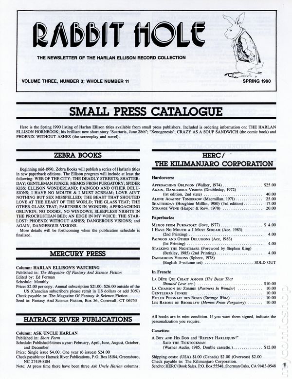 Rabbit Hole (1981-2018 Kilimanjaro Corporation / Harlan Ellison Newsletter) Fanzine comic books 1990