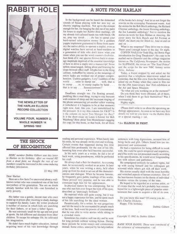 Rabbit Hole (1981-2018 Kilimanjaro Corporation / Harlan Ellison Newsletter) Fanzine comic books 1992
