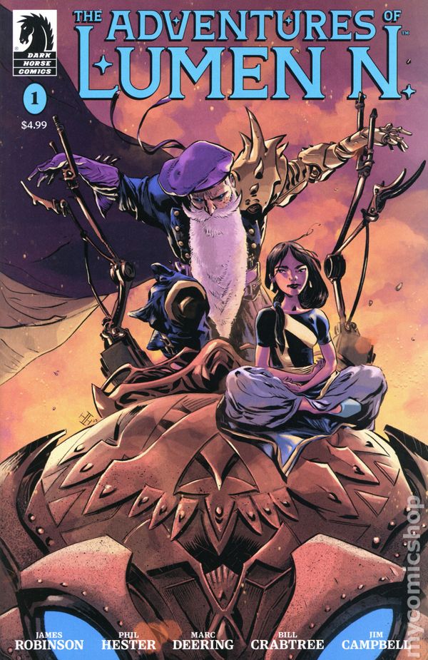 Written by James Robinson. Art by Phil Hester; Marc Deering. Cover by Mark Buckingham. The year is 1901 and our heroine Lumen is a precocious 13-year-old with many questions about her life. Why has her father been gone for years? Why must she learn so many languages and fighting techniques and whats with all the lessons in seafaring? Then an attack on her home by a horde of steam-punk assassins delivers the first glimmer of an answer, when Lumens savior reveals himself as her grandfather, the legendary Captain Nemo, one of the greatest characters in Victorian science fiction literature. A brand-new world of steam-punk adventure and thrills is about to open up for Lumen as she connects with the grandfather she never knew while together they take on a cabal of evil masterminds, intent on world domination . . . a world full of heroes and villains from Victorian adventure and fantasy fiction.• A brand-new adventure series by James Robinson, Phil Hester, Marc Deering, and Bill Crabtree! • Perfect for fans of Starman! • Four issue series. 28 pages, full color. Cover price $4.99.