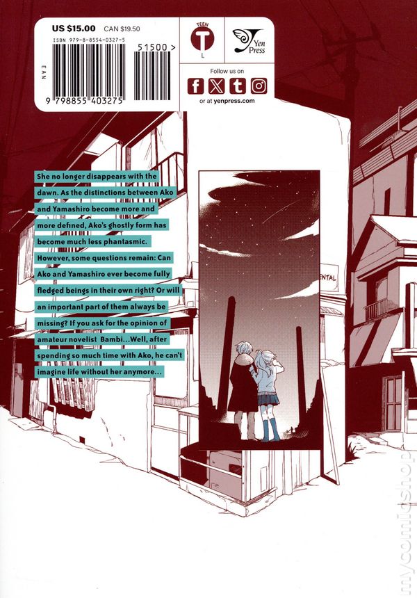 Volume 4 - 1st Printing. Story, art, and cover by HERO. She no longer disappears with the dawn. As the distinctions between Ako and Yamashiro become more and more defined, Akos ghostly form has become much less phantasmic. However, the question remains—can Ako and Yamashiro ever become fully-fledged beings in their own right, or will an important part of them always be missing? If you ask amateur novelist Bambis opinion…well, after spending so much time with Ako, he cant imagine life without her anymore! Softcover, 5 1/2-in. x 8-in., 152 pages, B&W. Cover price $15.00.