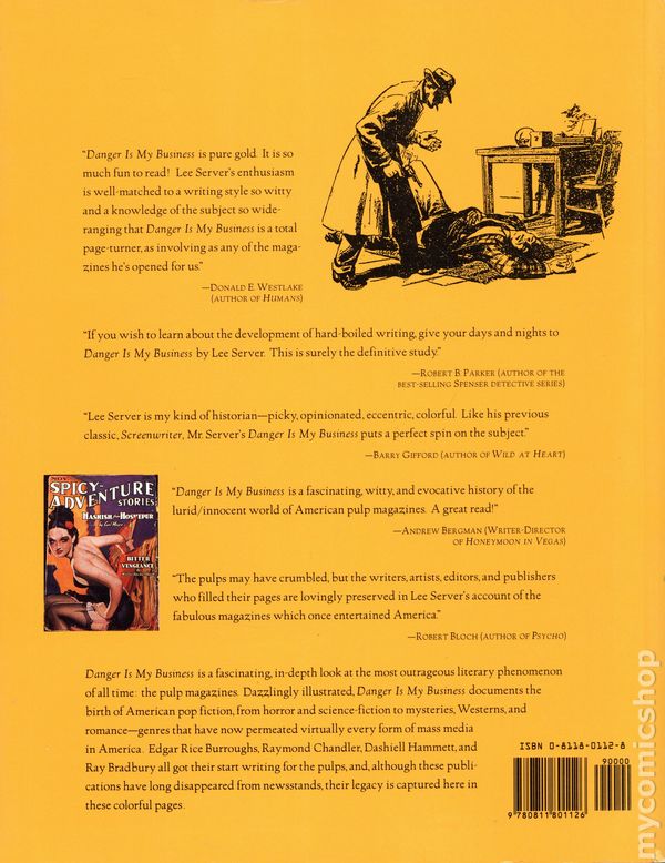 1st Printing. Written by Lee Server. A fascinating in-depth look at the most outrageous literary phenomenon of all time: the pulp magazine! Dazzlingly illustrated, Danger is my Business documents the birth of American pop fiction, from horror and science-fiction to mysteries, westersn, and romance - genres that have no permeated virtually every form of mass media in America!. Softcover, 8 1/2-in. x 11-in., 144 pages, full color. Cover price $17.95.