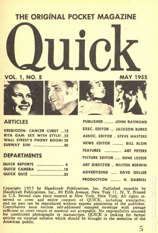 Quick (1955 Handicraft Publications) Vol. 1 #5Published May 1955 by Handicraft Publications, Inc.$26.00