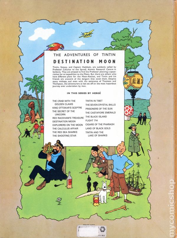 2nd and later printings. Story, art, and cover by Herge. Tintin and Captain Haddock receive an invitation from Professor Calculus to come to Syldavia, where Calculus is working on a top-secret project in secure government facility - a plan to crew a mission to the Moon! Hardcover, 9-in. x 12-in., 62 pages, full color.