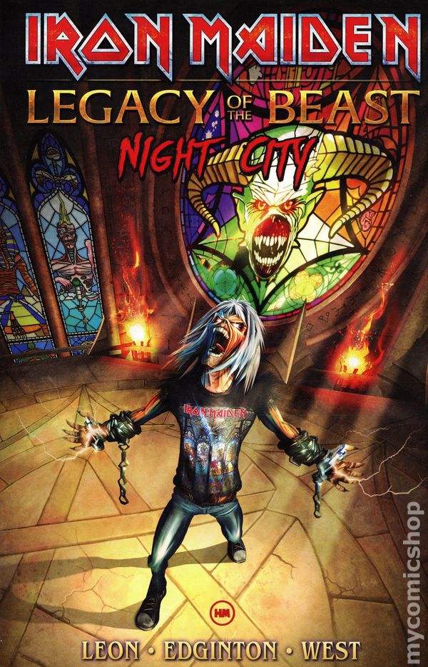 Volume 2 - 1st printing. "Night City!" Collects Iron Maiden: Legacy of the Beast (2019) Volume 2 #1-5. Written by Llexi Leon and Ian Edginton. Art by Kevin West, Richard Friend and Keith Champagne. Cover by Akirant In the aftermath of the Beast's defeat, meteor shards rain down on London town - warping the East End into a twisted hellscape known only as Night City! Eddie must ally with the mysterious Alchemist and fearless Madame Charlotte to save the city, the world... and even the fabric of the universe itself! Softcover, 140 pages, full color. Cover price $19.99.