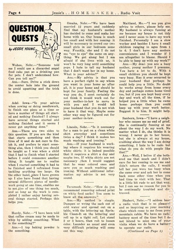 Jessie's Homemaker Radio Visit (1946-1980 Jessie S. Young) comic books 1955 or before