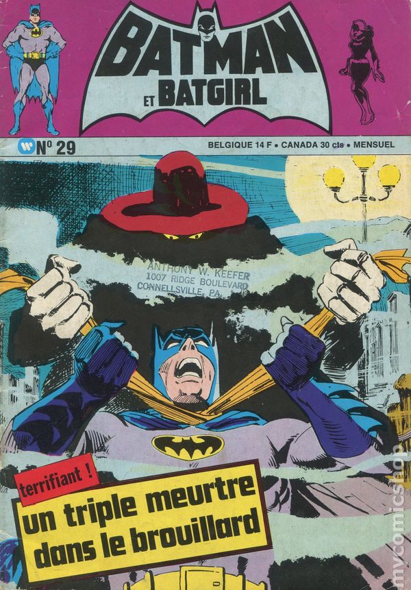 Belgian reprint series. Reprints material from Batman (1940) series. "Batman et Batgirl - Un triple meurtre dans le brouillard". 36 pages, B&W, French language.