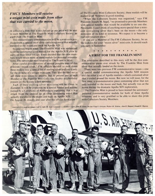 Publication for members of The Franklin Mint Collectors Society. 32 pages on slick paper, color and B&W.