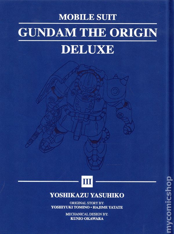 Volume 3 - 1st printing. Original Story by Yoshiyuki Tomino and Hajime Yatate. Mechanical Design by Kunio Okawara. The classic Gundam series now in a premium Deluxe Edition hardcover! PRAISE FOR THE NEW YORK TIMES BESTSELLING SERIES. Its a good book. Very good, actually. Very good war comics, requiring no prior experience with anime or mecha or Gundam—just a well-made, old-fashioned war comic, full of thrills and spills and lucky breaks and narrow escapes and preening villains youll love to hate and pigheaded heroes you may hate to love, and expert drawings by a master craftsman, and hard, sturdy violence. —Joe McCulloch, The Comics Journal Hardcover, 7 3/4-in. x 10 1/4-in., 976 pages, B&W. NOTE: Does not include essays and illustrations from the original release that are not the authors own. Cover price $54.95.