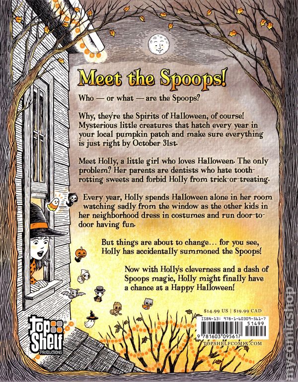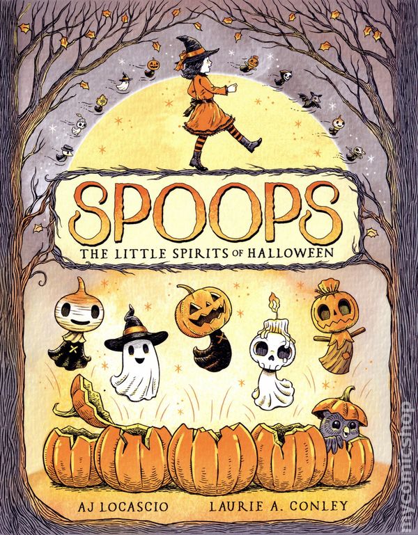 2nd and later printings. Written by A.J. Locascio. Art and cover by Laurie Conley. Discover the whimsical magic behind Halloween in this timeless new illustrated fable for the whole family! Who changes the leaves? Summons the autumn winds? Wakes ghosts and spirits to haunt houses and chill the air? Why, Spoops, of course! They hatch from the smallest gourds in your local pumpkin patch at the start of every fall, then tend to your town to ensure everything is just right for Halloween. In this story, young Holly Hollowell loves Halloween more than anything, but her dentist parents are totally against any event that promotes tooth-rotting sweets. While other kids trick-or-treat, Holly watches sadly from her window…until the Spoops arrive to turn things around! With their magical help, Holly can finally show her parents the true spirit of Halloween: not the candy, but the joy of expressing yourself, unleashing your imagination, and letting your spooky side soar! Presented in rhyming verse that recalls Dr. Seuss and Twas the Night Before Christmas, along with nostalgic illustrations in black, white, and orange, Spoops is an instantly timeless classic that places Halloween right alongside other beloved holidays. Its a clever trick and a lovable treat that the whole family will treasure. Hardcover, 7 1/2-in. x 9-in., 72 pages, full color. All Ages Cover price $14.99.