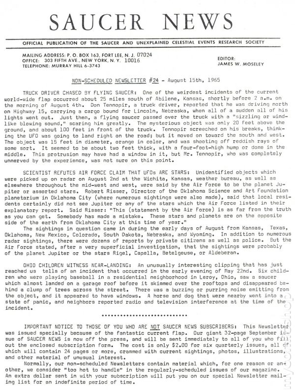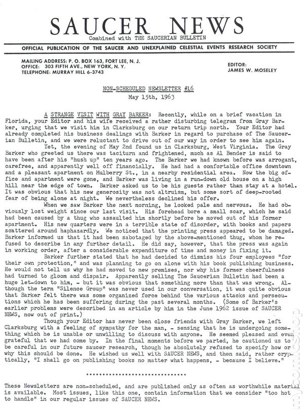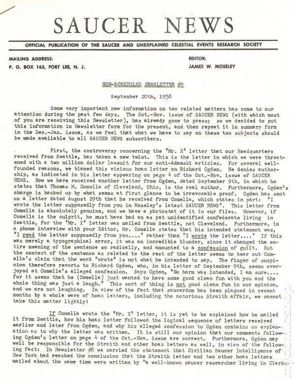 Saucer News, Non-Scheduled Newsletter (1955-1967 James W. Moseley) comic books