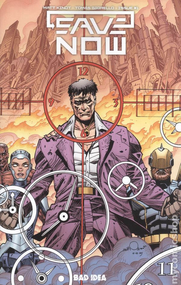 Limited 1 for 100 Retailer Incentive Variant Cover. (W) Matt Kindt (A) Tomas Giorello (CA) Walt Simonson New York Times bestselling writer Matt Kindt (BRZRKR) joins forces with Tomás Giorello (STAR WARS), the visionary artist behind PLANET DEATH, to present a masterclass in storytelling in this epic, action-packed sci-fi saga. Armed with the extraordinary ability to "save" any moment in his life and then go back and relive from that point forward again, SAVER can rewrite his past, altering his actions time and time again until he gets things right. But cursed with only being able to travel backwards, never forwards, he is burdened by having to spend his relived life in agonizing real time. Travel back 6 days, and he must relive those days in full, aging all the while. Saver has seen our future, and our impending apocalypse. Yet, no matter how many times he goes back and no matter how far back he goes, he can't steer us clear of armageddon. What would you do if you knew the world was going to end but couldn't stop it? What if you could choose to live your life out repeating the best year of your life? Which year would it be? This is the question at the heart of this year's most must-read comic event. SAVE NOW is a triumph of storytelling. A sci-fi story like none that has ever come before. Action-packed, mind-bending, heart-wrenching and life-affirming. Prepare yourself for an epic adventure as SAVE NOW unfolds before your eyes in the comic event of the year. Master craftsmen Matt Kindt, Tomás Giorello, and the most talented storytelling team in comics have meticulously crafted a comic that will leave you breathless and wanting more. Brace yourself for an ending you'll never see coming, one that defies belief, as the boundaries of possibility are shattered, and time is rewritten with every turn of the page. Cover price $5.99.
