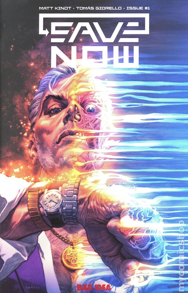 (W) Matt Kindt (A) Tomas Giorello (CA) Lewis LaRosa New York Times bestselling writer Matt Kindt (BRZRKR) joins forces with Tomás Giorello (STAR WARS), the visionary artist behind PLANET DEATH, to present a masterclass in storytelling in this epic, action-packed sci-fi saga. Armed with the extraordinary ability to "save" any moment in his life and then go back and relive from that point forward again, SAVER can rewrite his past, altering his actions time and time again until he gets things right. But cursed with only being able to travel backwards, never forwards, he is burdened by having to spend his relived life in agonizing real time. Travel back 6 days, and he must relive those days in full, aging all the while. Saver has seen our future, and our impending apocalypse. Yet, no matter how many times he goes back and no matter how far back he goes, he can't steer us clear of armageddon. What would you do if you knew the world was going to end but couldn't stop it? What if you could choose to live your life out repeating the best year of your life? Which year would it be? This is the question at the heart of this year's most must-read comic event. SAVE NOW is a triumph of storytelling. A sci-fi story like none that has ever come before. Action-packed, mind-bending, heart-wrenching and life-affirming. Prepare yourself for an epic adventure as SAVE NOW unfolds before your eyes in the comic event of the year. Master craftsmen Matt Kindt, Tomás Giorello, and the most talented storytelling team in comics have meticulously crafted a comic that will leave you breathless and wanting more. Brace yourself for an ending you'll never see coming, one that defies belief, as the boundaries of possibility are shattered, and time is rewritten with every turn of the page. 40 pages, full color, rated T+. Cover price $5.99.