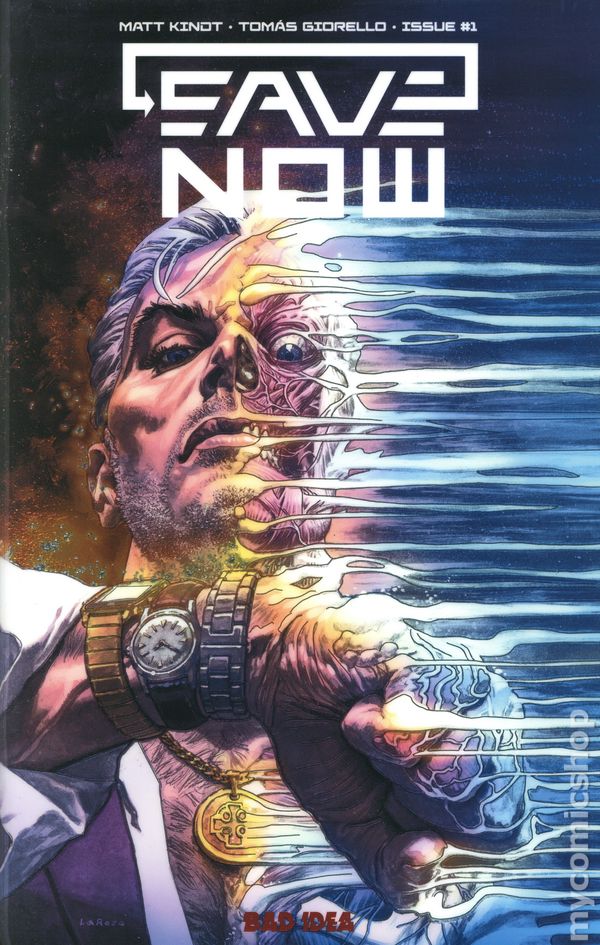 View scanLimited 1 for 50 Retailer Incentive Variant Cover. (W) Matt Kindt (A) Tomas Giorello (CA) Wilfredo Torres New York Times bestselling writer Matt Kindt (BRZRKR) joins forces with Tomás Giorello (STAR WARS), the visionary artist behind PLANET DEATH, to present a masterclass in storytelling in this epic, action-packed sci-fi saga. Armed with the extraordinary ability to "save" any moment in his life and then go back and relive from that point forward again, SAVER can rewrite his past, altering his actions time and time again until he gets things right. But cursed with only being able to travel backwards, never forwards, he is burdened by having to spend his relived life in agonizing real time. Travel back 6 days, and he must relive those days in full, aging all the while. Saver has seen our future, and our impending apocalypse. Yet, no matter how many times he goes back and no matter how far back he goes, he can't steer us clear of armageddon. What would you do if you knew the world was going to end but couldn't stop it? What if you could choose to live your life out repeating the best year of your life? Which year would it be? This is the question at the heart of this year's most must-read comic event. SAVE NOW is a triumph of storytelling. A sci-fi story like none that has ever come before. Action-packed, mind-bending, heart-wrenching and life-affirming. Prepare yourself for an epic adventure as SAVE NOW unfolds before your eyes in the comic event of the year. Master craftsmen Matt Kindt, Tomás Giorello, and the most talented storytelling team in comics have meticulously crafted a comic that will leave you breathless and wanting more. Brace yourself for an ending you'll never see coming, one that defies belief, as the boundaries of possibility are shattered, and time is rewritten with every turn of the page. Cover price $5.99.