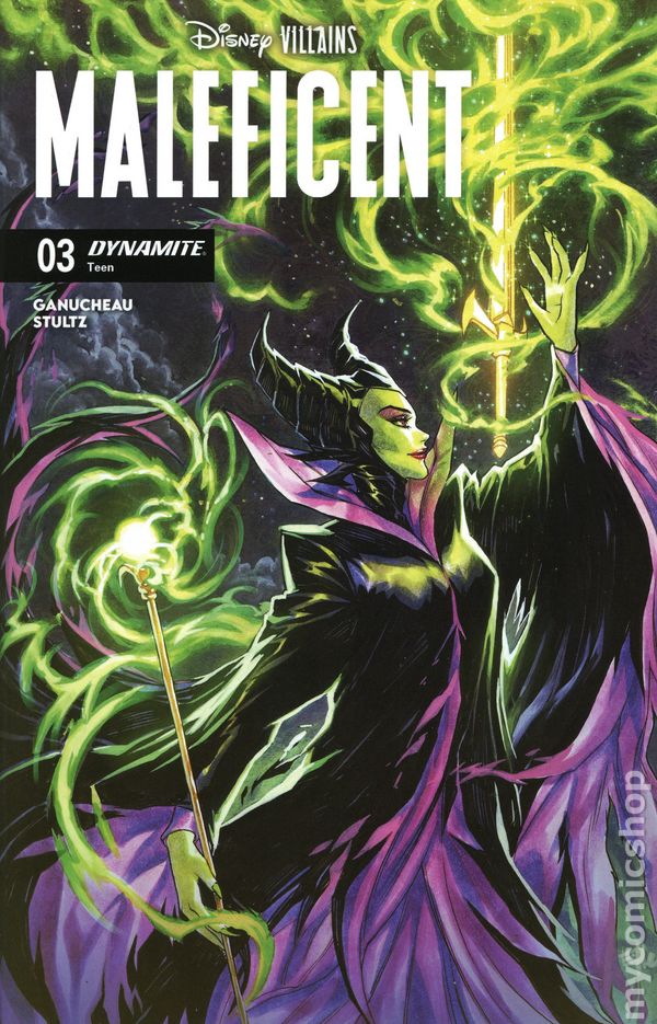 (W) Paulina Ganucheau (A) Theo Stultz (CA) Paulina Ganucheau JOURNEY INTO DARKNESS! The Queen of the Forbidden Mountain returns for an all-new tale of villainy crafted by writer PAULINA GANUCHEAU and artist THEO STULTZ! Set in the time just after the vengeful Maleficent leveled her curse against Princess Aurora, this hypnotic new adventure follows the power-hungry regent as she sets out to build up her arsenal of magical energy to the point that she will be invulnerable to any force that would dare challenge her reign. When her goblin minions return from a raid against a neighboring kingdom bearing a mysterious glowing grimoire, the Queen senses an ancient and otherworldly presence between its covers — a force that could deliver to her a new wellspring of nearly unlimited power. To take possession of it, however, she must leave the safety of her kingdom and venture into an unfamiliar and dangerous realm — a place from which few humans ever return! Featuring darkly beautiful covers by PAULINA GANUCHEAU, ELLERY SANTOS, ROBERT QUINN, and THEO STULTZ, Disney Villains: Maleficent Vol. 2 #1 adds a new layer of complexity to one of Disneys most compellingly sinister antagonists! 32 pages, full color, rated teen. Cover price $4.99.