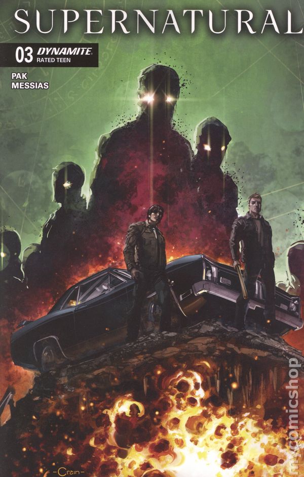 View scans(W) Greg Pak (A) Eder Messias (CA) Photo THE BROTHERS WINCHESTER RETURN! Get ready to hit the road again with Dean and Sam as they prowl the highways and byways of small-town America in search of demonic wrongdoing to put right! Set between the foundational first and second seasons of the landmark television series, this brand-new title from acclaimed author GREG PAK (Darth Vader, Lilo & Stitch) and preternaturally gifted artist EDER MESSIAS (Sam Wilson: Captain America) brings readers back to where the dark magic first began — and reveals a disturbing new threat that the bickering brothers will have to face before they can return to hunting down the demon who killed their mother.t In this first issue, the monster hunters must uncover the entity responsible for a series of mysterious fires in a decaying rust belt town — attacks that begin with a Windler Industries factory burning down, and then escalate to several Windler employees themselves going up in flames. But finding the malevolent force behind the otherworldly arsons may not be as straightforward as it might seem — especially once the suspiciously well-prepared CEO Steff Windler gets personally involved! Featuring atmospherically arresting covers from CLAYTON CRAIN, DAVID COUSENS, and EDER MESSIAS, each issue of Supernatural also includes a special PHOTO cover showcasing the beloved cast of the hit show! Cover price $50.00.