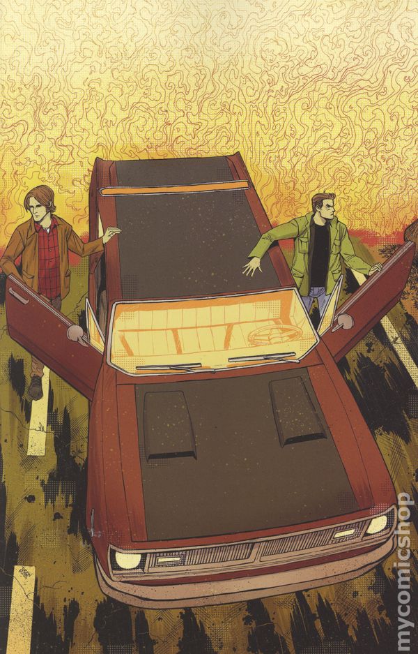(W) Greg Pak (A) Eder Messias (CA) Eder Messias THE BROTHERS WINCHESTER RETURN! Get ready to hit the road again with Dean and Sam as they prowl the highways and byways of small-town America in search of demonic wrongdoing to put right! Set between the foundational first and second seasons of the landmark television series, this brand-new title from acclaimed author GREG PAK (Darth Vader, Lilo & Stitch) and preternaturally gifted artist EDER MESSIAS (Sam Wilson: Captain America) brings readers back to where the dark magic first began — and reveals a disturbing new threat that the bickering brothers will have to face before they can return to hunting down the demon who killed their mother.t In this first issue, the monster hunters must uncover the entity responsible for a series of mysterious fires in a decaying rust belt town — attacks that begin with a Windler Industries factory burning down, and then escalate to several Windler employees themselves going up in flames. But finding the malevolent force behind the otherworldly arsons may not be as straightforward as it might seem — especially once the suspiciously well-prepared CEO Steff Windler gets personally involved! Featuring atmospherically arresting covers from CLAYTON CRAIN, DAVID COUSENS, and EDER MESSIAS, each issue of Supernatural also includes a special PHOTO cover showcasing the beloved cast of the hit show! 32 pages, full color, rated teen Cover price $4.99.