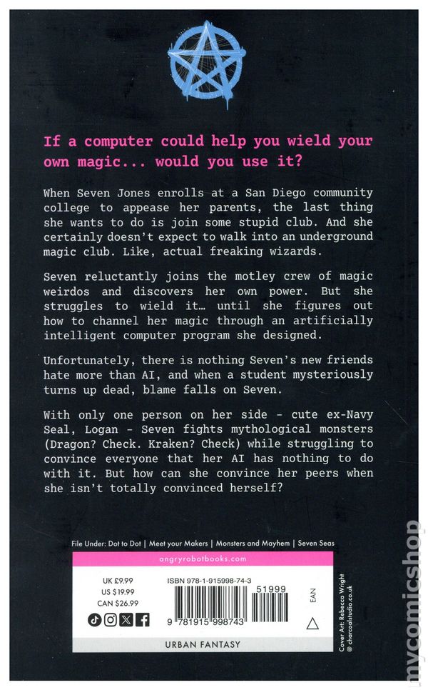 1st printing. Written by Liz Shipton. Cover by Rebecca Wright. Including magic, AI and punk culture, Dot Slash Magic is a new, spicy urban fantasy from TikTokker Liz Shipton, perfect for fans of I am Number Four and Zodiac Academy. If a computer could help you wield your own magic... would you use it? When Seven Jones enrolls at a San Diego community college to appease her parents, the last thing she wants to do is join some stupid club. And she certainly doesnt expect to walk into an underground magic club. Like, actual freaking wizards. Seven reluctantly joins the motley crew of magic weirdos and discovers her own power. But she struggles to wield it… until she figures out how to channel her magic through an artificially intelligent computer program she designed. Unfortunately, there is nothing Sevens new friends hate more than AI, and when a student mysteriously turns up dead, blame falls on Seven. With only one person on her side – cute ex-Navy Seal, Logan – Seven fights mythological monsters (Dragon? Check. Kraken? Check) while struggling to convince everyone that her AI has nothing to do with it. But how can she convince her peers when she isnt totally convinced herself? Softcover, 5 1/2-in.x 8-in., 400 pages, full color. Cover price $19.99.