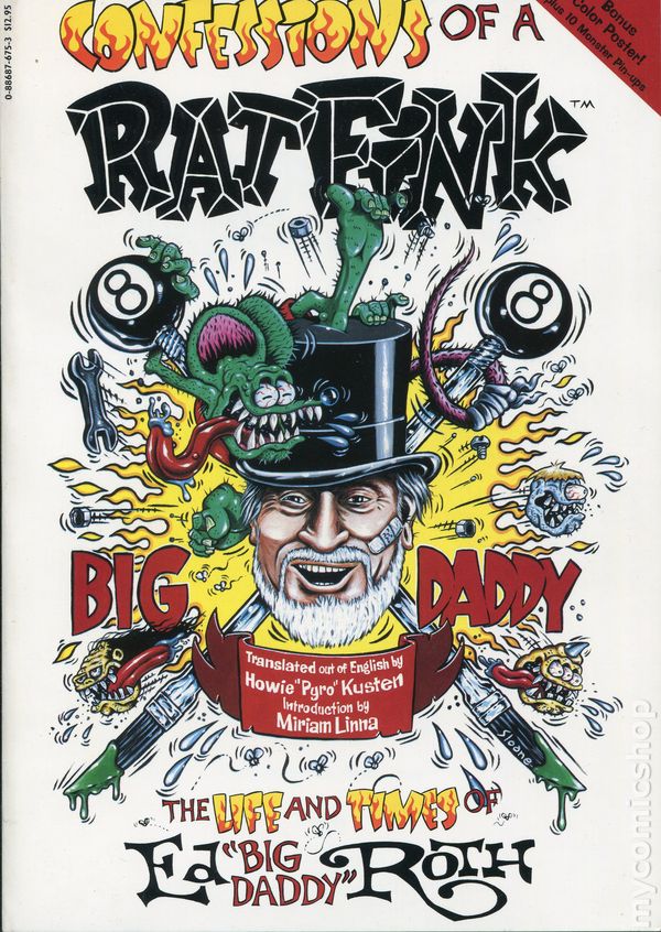 First Printing. Written by Ed "Big Daddy" Roth and Howie "Pyro" Kusten. Big Daddy Roth is the maestro of hot rod and underground monster cartooning who pioneered the Kustom Kar Kraze of the early 60's. Long before hippies or punks, Roth's low-rent rodent, Rat Fink, captured the hearts and minds of America's teenage rebels and hipsters with his grungy anti-authority aesthetic. Includes a reprint of a 6-page comic story illustrated by Alex Toth. Includes a color poster and 10 Monster pin-ups. Squarebound. 7" X 10". B&W. Cover price $12.95.