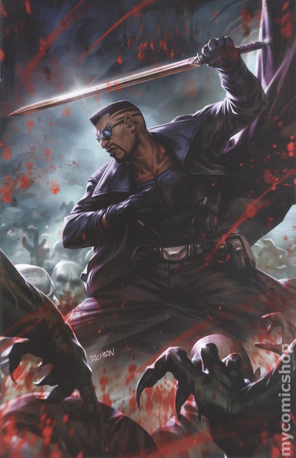 Limited 1 for 100 Retailer Incentive Variant Cover. (W) Christopher Condon; G. Willow Wilson (A) Devmalya Pramanik (CA) Derrick Chew FACE FRONT, HORROR FANS! It's October! You know what that means…it's the season for ghouls, goblins and other horrifying haunts - and unfortunately for your favorite heroes and villains (but frightfully fortunate for you readers out there in Mighty Marveldom), the Marvel U is far from immune to the effects of this time of year! FIRST! The terrifyingly talented creative team of AL EWING & KEV WALKER brings you a blood-curdling story starring BLADE! THEN! We're not done with BLADE yet, as industry powerhouse G. WILLOW WILSON and your new favorite artist DEVMALYA PRAMANIK have their own daring vision of the daywalker! BUT WAIT! Because you simply cannot afford to miss the final scintillating story in this issue, starring IRON MAN from breakout star CHRIS CONDON! What? You thought we were going to let the horror characters of the Marvel U have all the fun? WELL, YOU WERE WRONG! RATED PARENTAL ADVISORY. Cover price $5.99.