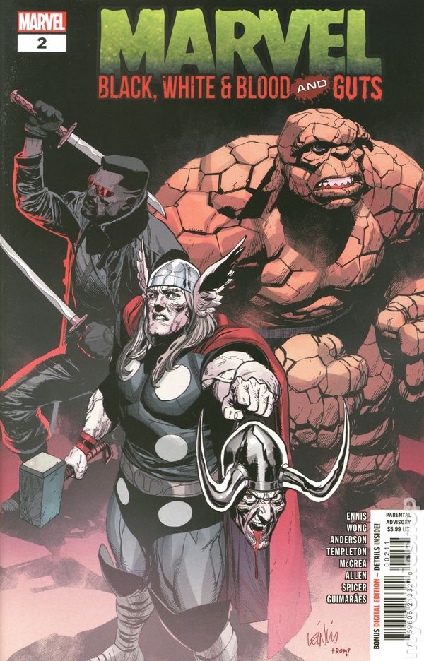 (W) Garth Ennis; Alyssa Wong (A) Chris Allen; John McCrea (CA) Leinil Yu First, join industry legend MARK WAID as he casts a spell with a DOCTOR STRANGE story that truly lives up to the good doc's name! THEN ALYSSA WONG tells a terrifying tale of brotherly love and bone-breaking hammers, starring Thor and Loki (or what's left of him)! AND LASTLY! It wouldn't be a horror anthology without a saga of vampiric violence starring BLADE! This time from celebrated creator HO CHE ANDERSON! PLUS: A bonus two-page set of ALL-NEW Daily Bugle funnies from Ty Templeton - this time, they're SUNDAY SCARIES! RATED PARENTAL ADVISORY. 40 pages, full color, rated parental advisory. Cover price $5.99.